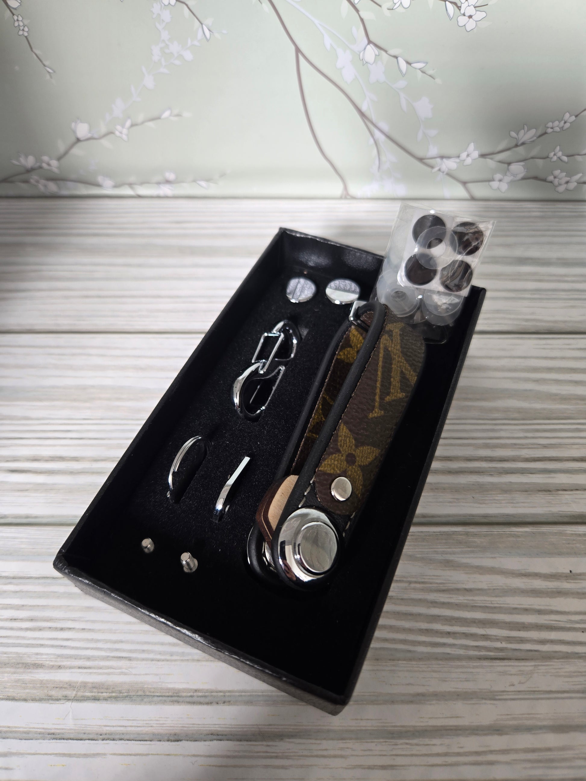 Multi-key holder with keyfob ring attachment/hook and extras included with box! Upcycled.