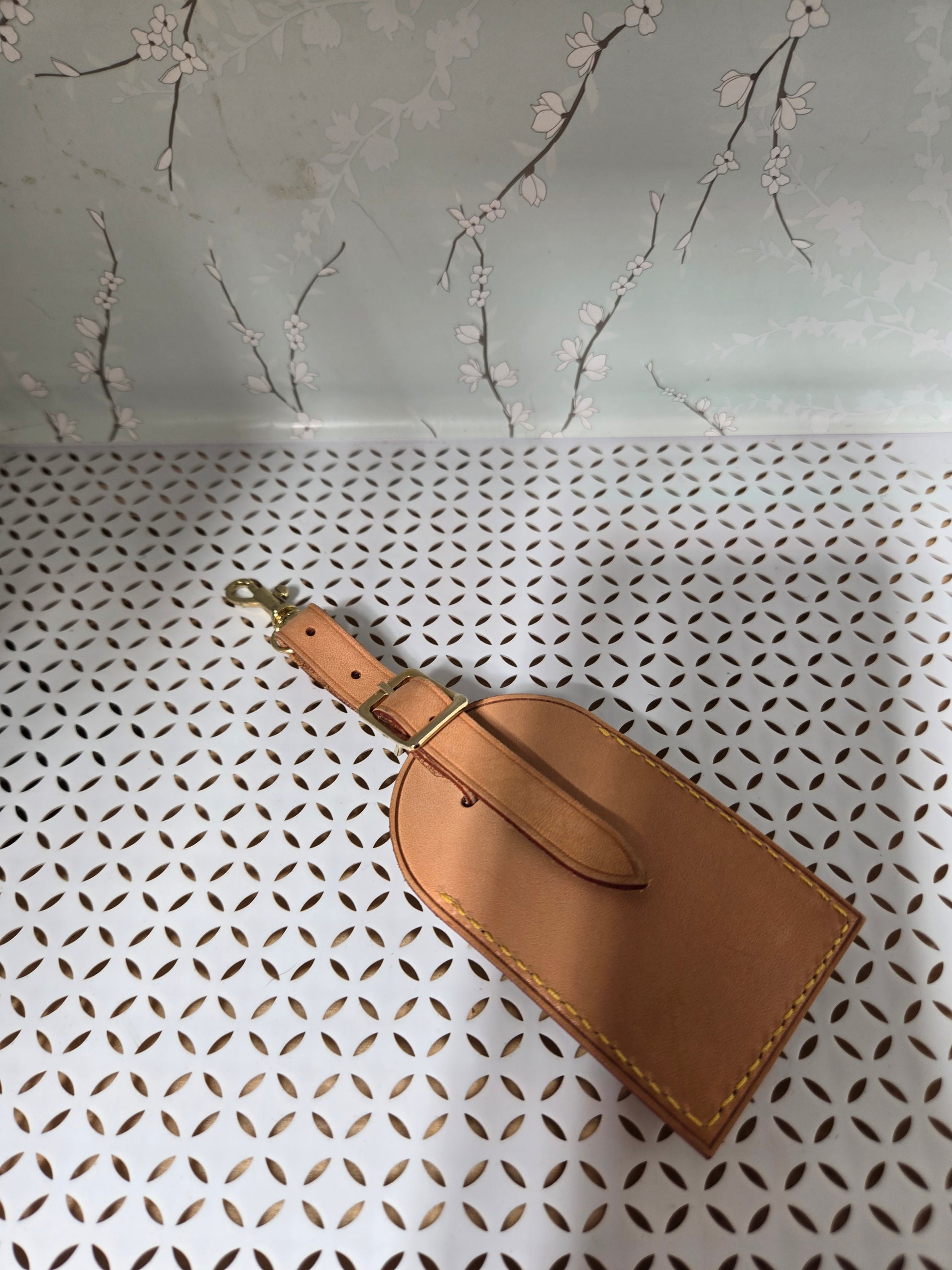 The luggage tag is original with an upcycled hand riveted bow attached with a hook for easy to use bag charm. Perfect touch to any bag.
