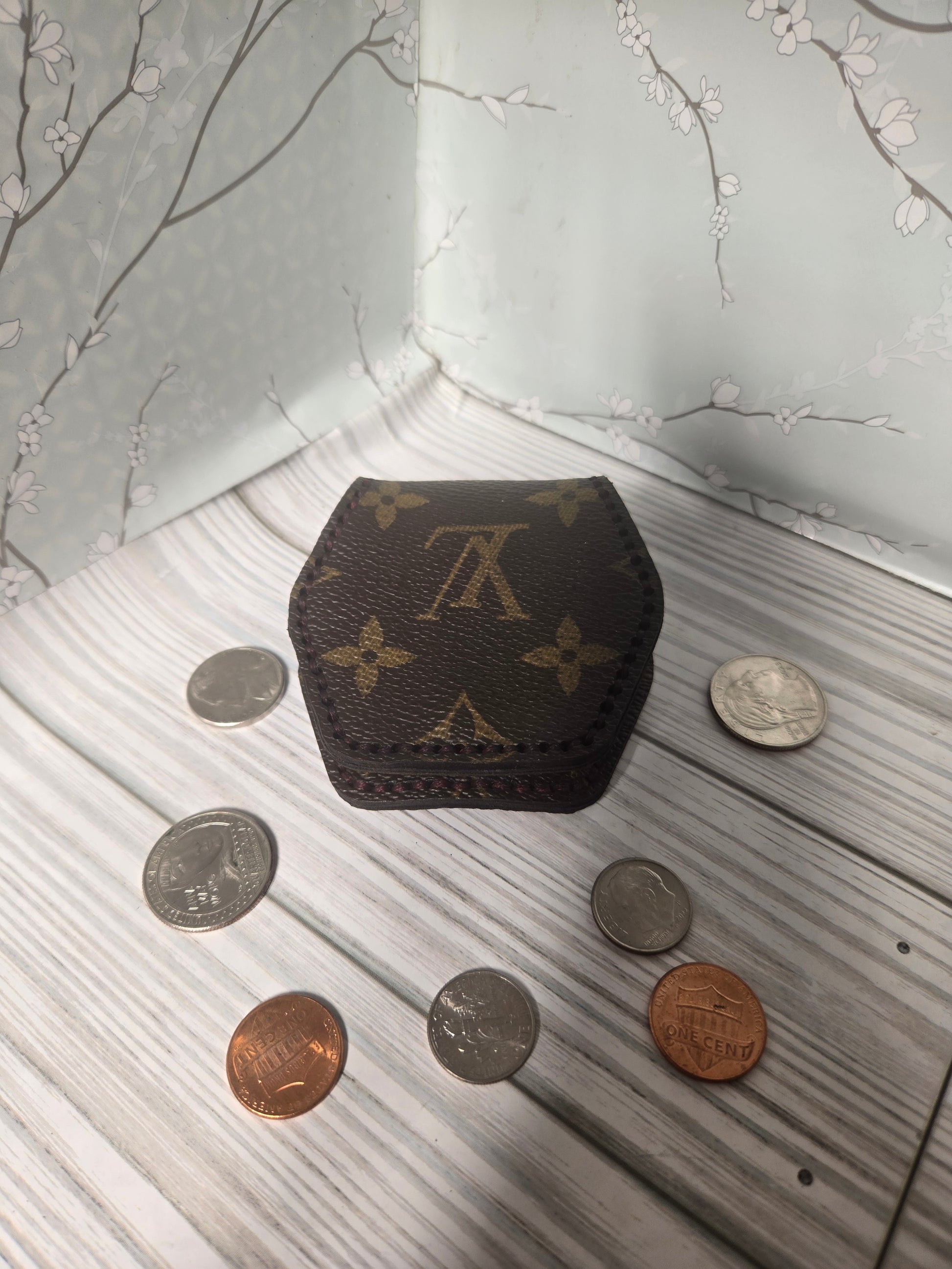 Hand sewn handmade and upcycled with authentic vintage designer bags. Coin pouch with a snap button closure.