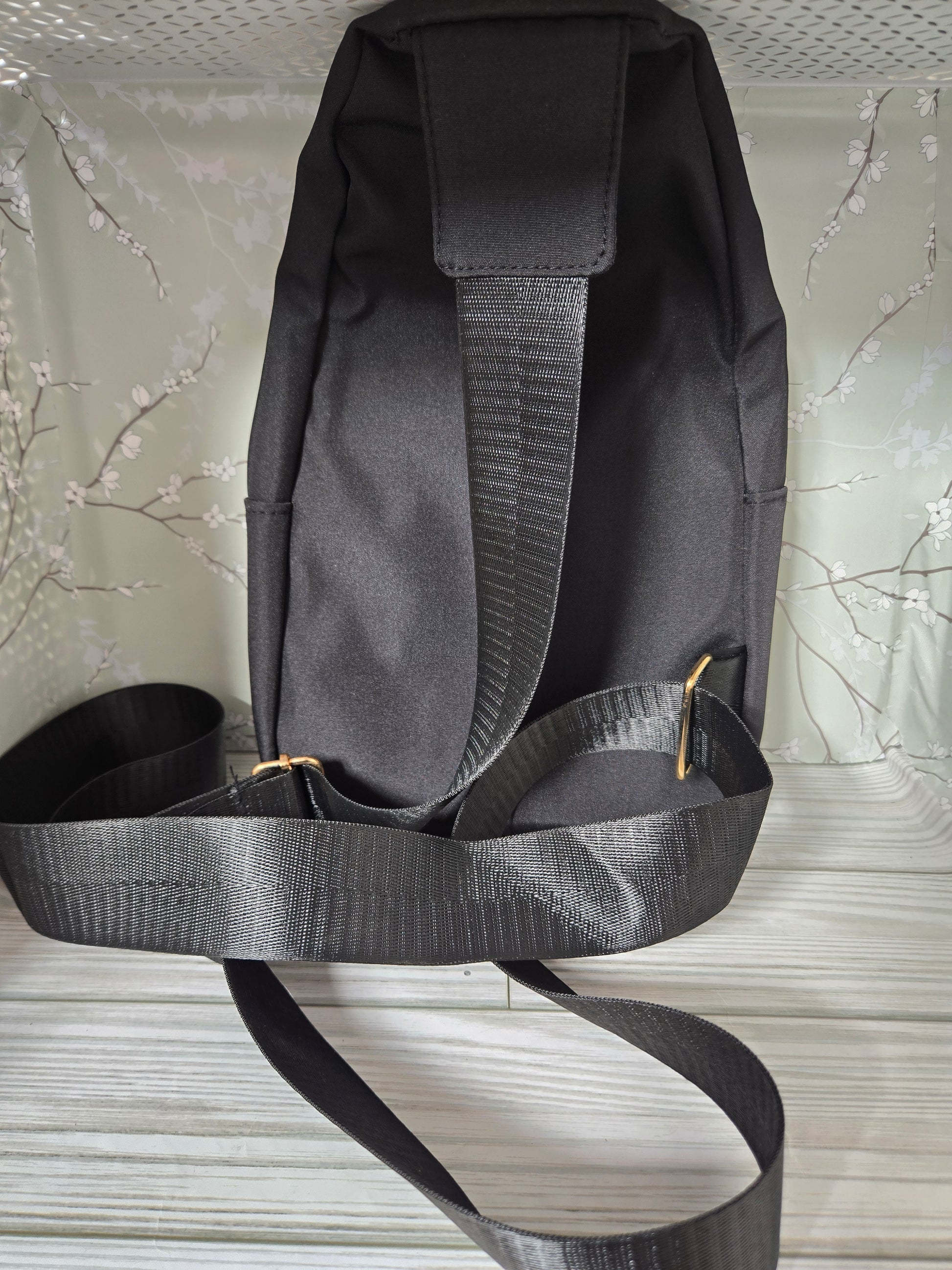 Upcycled sling bag upcycled from authentic designer bags. Multipockets with two zippered compartments. Can hold phone, keys, wallet, and so much more. So easy to throw on and go!